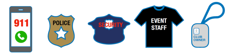 • If unable to locate venue security, look for venue staff by recognizing them by shirt, lanyard, or name tag. Someone with a headset or radio is typically a great person who can alert the proper individuals who can assist.